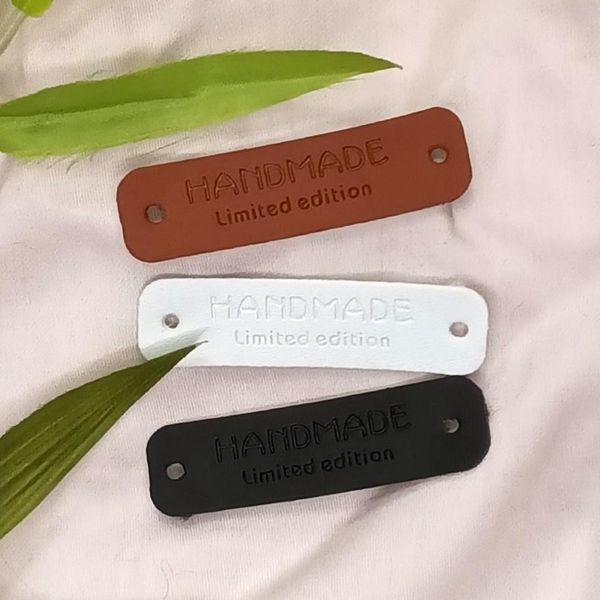 Merkelapper med teksten "Handmade limited edition" i 3 ulike farger.