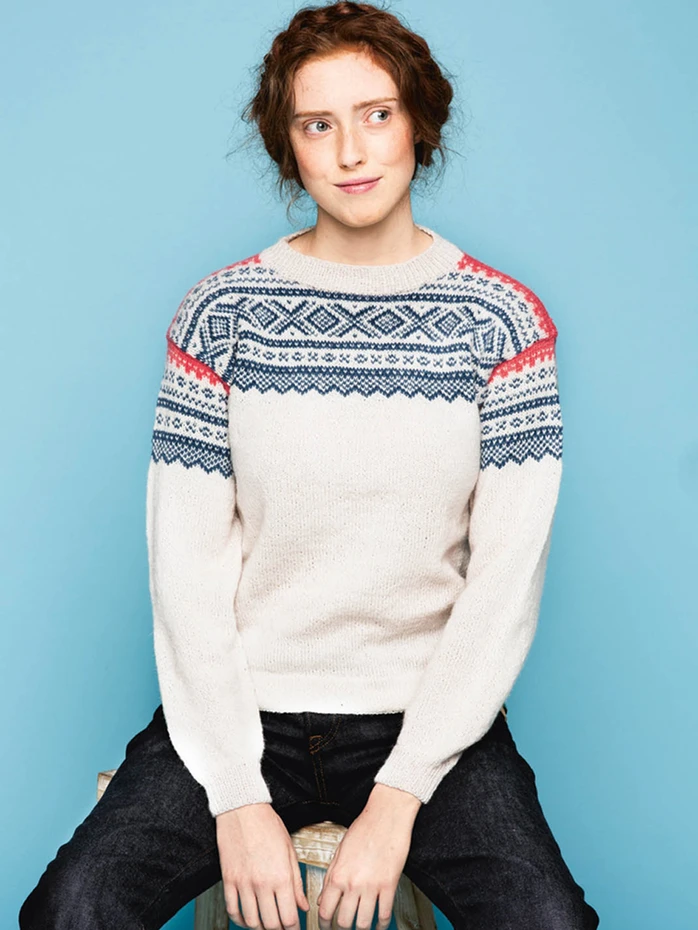 Tema 50, Nr. 13 - Mariusgenser, Strikkes nedenfra og opp og har isydde armer. strikket i Tynn Alpakka Ull. Tynn Alpakka Ull som opprinnelig er brukt i oppskriften er utgått, men er her erstattet med Mini Alpakka. Husk å sjekke strikkefastheten.